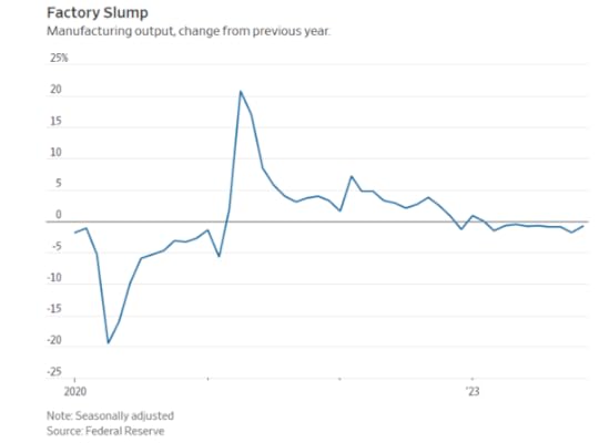 What this suggests is that the continued levels of high interest rates imposed by the Federal Reserve did not get inflation rates down and won’t do so from hereon. So what central banks call ‘going the last mile’ to reach the Fed’s arbitrary 2% a year rate is not likely to be achieved by Fed policies. Indeed, there are signs that inflation may start to rise again.