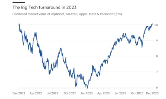 Take the view of the economists at Goldman Sachs, the leading investment bank in the US. GS economists report that “the global economy has outperformed even our optimistic expectations in 2023. GDP growth is on track to beat consensus forecasts from a year ago” and “we continue to see only limited recession risk”. So, they conclude, the US Federal Reserve’s policy of hiking interest rates has succeeded in getting inflation down without incurring a slump in production and employment – at least in the US. As the GS economists put it, the US economy is on “its final descent to a soft landing”, with real GDP growth projected to expand 2.1% in 2024.