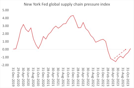 The misery index may be down, but most households in the US, Europe and Japan are still suffering the after-effects of the pandemic slump. Prices in Europe and the US are higher by about 17-20% compared to the end of the pandemic. Jobs may be plentiful, but in general they do not pay well and are often part-time or temporary. Moreover, the continuing war in Ukraine and now the horrendous decimation of Gaza could lead to a reversal of the past fall in global supply chain pressure – according to the New York Fed index.