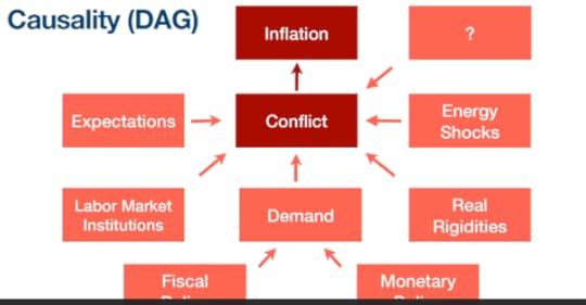 In his presentation, Werning attempted to come up with an inflation theory that covered all the bases. It all starts with too much demand caused by too much money injections from the central bank and by too much government spending. Then there are various rigidities (monopolies, trade unions etc) that push up prices and by energy price shocks; and finally inflationary expectations.