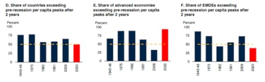 And even on these criteria, emerging and developing countries are far behind. Quantitative easing has averaged 15 per cent of GDP in high-income countries against 3 per cent in emerging and developing countries. Fiscal support averaged 17 per cent in high-income countries against 5 per cent in emerging and developing countries.
