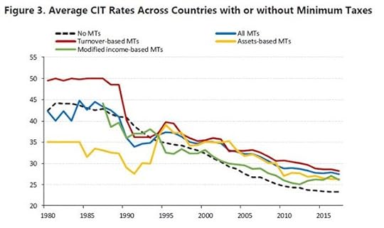This deal will do little to reduce inequality and establishing fairness. The IMF chart below groups together 196 countries with the same type of corporate income tax (CIT) system (there are several) & if a minimum tax (MT) rate is used. It shows that, even if some minimum international level had been set back in the 1980s, tax levels would still be way below levels in the 1980s, minimum or no minimum.