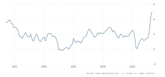 The risk of significant consumer price inflation is rising as bottlenecks in global supply chains build up. US consumer price inflation rate jumped to 5% in May, the highest rate since August 2008 due to soaring commodity prices, supply constraints, and higher wages. The core index jumped 3.8% in May, the largest increase since June 1992.