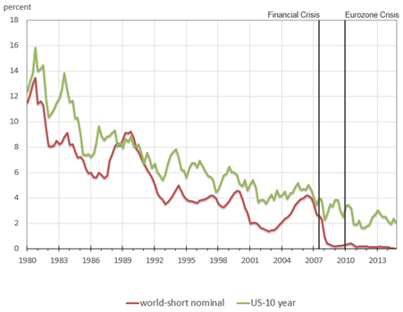The decline in nominal interest ratesIt’s interest rates that matter because corporate debt is at record highs in most major economies, while stock markets ride on a flow of borrowed money. So any jump in the cost of borrowing could be devastating to many companies and trigger a stock and bond market collapse.
