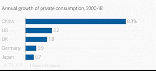 China has made by far the biggest contribution to the growth in wealth this century. The CS economists reckon that “between now and 2025, we envisage that China will account for more than a quarter of the rise in household wealth recorded for the whole world.” And that will mean that “China’s wealth per adult in 2025 will qualify it as a “high-wealth” country in our classification scheme. China began this century with wealth averaging $4,250 per adult, placing them in the lowest of our country wealth categories. Transiting to the highest of our wealth categories within a 25-year timespan would be an extraordinary achievement by any standard.”