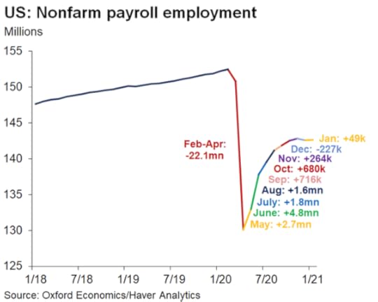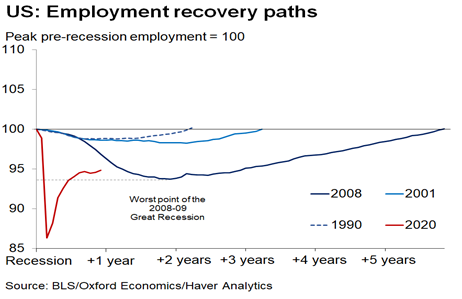 Even the US has a long way to go to restore employment levels existing before the pandemic.