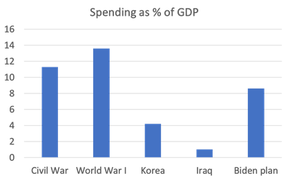 So the capitalist sector is in no state to engender a sustained economic recovery, even with more fiscal stimulus from Biden and the European Commission coming this year and next. And Biden’s package, although apparently large, is not really by historic standards. You could say it is the largest in peace time, but then the impact of the COVID pandemic in the last year is like a world war. What is needed is what some call a ‘war economy’, where the state steps in to replace the capitalist sector and directs resources for recovery, whatever the profitability outcomes. In WW2 government spend and investment was way higher than anything Biden plans. But as Keynesian Paul Krugman pointed out in the recent post, “World War II, which was vastly bigger but also took place in the context of a controlled economy”.