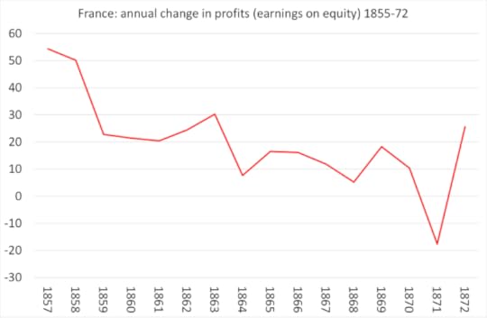 As the rate of profit fell during the 1860s, if from historically high levels, annual profits growth also declined, with significant drops in 1859 and 1864.