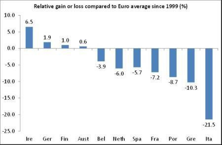 Again ironically, the optimal currency union theory proved not be optimal at all! Instead of economies converging towards equilibrium with higher incomes per capita, capitalism operates unevenly and tends to disequilibrium and divergence. As a result, in the Euro single currency area, since 1999 productivity levels between the northern core and southern periphery have widened, not narrowed.