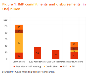 Indeed, emergency lending needed during the COVID slump has not really been significant in IMF largesse. “Out of the committed assistance, the largest part is in the form of pre-approved credit lines offered to Peru, Chile, and Colombia. Only Colombia has utilised its credit line thus far. The disbursements through rapid emergency lending, which comprise the support offered to almost 70 countries, only amount to about $30 billion. Combined with traditional lending arrangements, the IMF disbursed about $50 billion to 81 countries in 2020. Disbursements for 2020 are only slightly larger than in previous years, when IMF assistance went to a much smaller number of countries.”