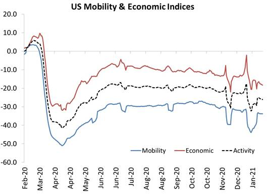 So as Biden takes his oath at the inauguration ceremony, Americans are still faced with near record levels of COVID cases and deaths. At the same time, economic activity and people mobility remains well below pre-pandemic levels. According to the latest Google mobility report, US economic activity is still some 20-25% below where it was this time last year.