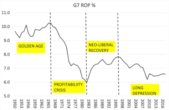 And that leads to the third reason not to expect a V-shaped recovery that puts global capitalism back on sustained growth. The average profitability of capital in the major economies is at post-war lows, compounded by the pandemic slump.