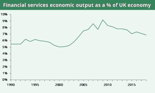 And that’s serious because the UK is a ‘rentier’ economy that depends heavily on its financial and business services sector. Financial services contribute 7% of UK GDP, some 40% higher a contribution than in Germany, France or Japan.