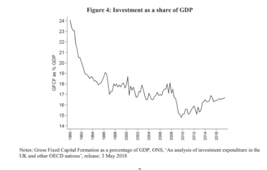 The UK’s Office for Budget Responsibility reckons that one third of this relative loss has already taken place because of the reduction in the pace of business investment since the referendum as domestic businesses stopped investing much, due to uncertainty about the Brexit deal along with a sharp drop in foreign inward investment.