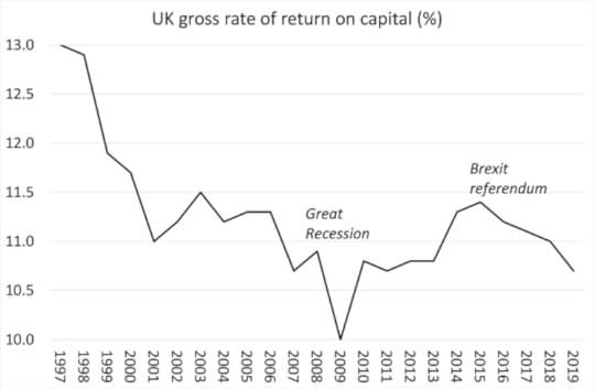 And the reason for this is clear. The average profitability of British capital has been falling. Even before the pandemic hit in 2020, average profitability (according to official statistics) was 30% below the level of the late 1990s and, excluding the Great Recession, was at an all-time low.
