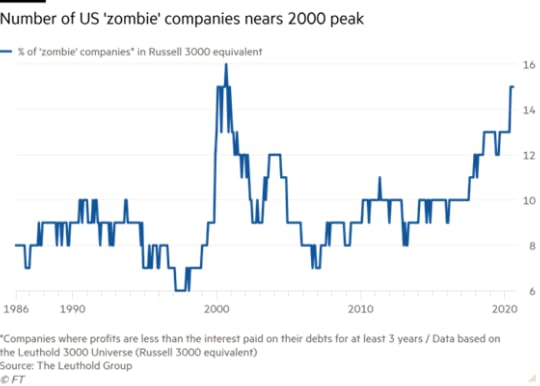 And the so-called Group of Thirty bankers issued a report recently that warned of such a crunch and urged immediate action to avoid it. They warned that “while illiquidity has characterized the Covid-19 economic crisis heretofore, insolvency may come to bear on many businesses as economic strain from the pandemic continues.” Even cheap credit is not enough to enable the ‘zombie’ companies to recover. Zombie firms are sitting on an unprecedented $2 trillion of obligations.