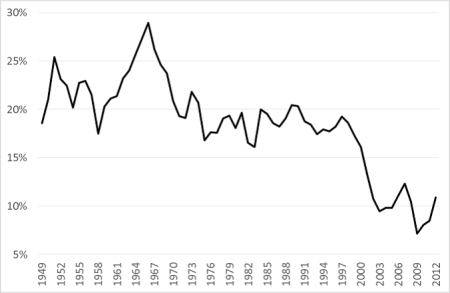 But it is not right. First, the golden age did not come to an end because Keynesian policies were dropped; on the contrary, Keynesian policies were dropped because the Golden Age came to an end. And that was because the profitability of capital took a serious dive from the late 1960s to the early 1980s in all the major capitalist economies. As a result, investment was volatile and economies suffered several slumps. Far from Keynesian demand management stopping these swings, even in the 1950s and 1960s, they actually exacerbated them. At least that was the view of the leading British Keynesian economist of the 1960s, Christopher Dow, who summed up his monumental history of the period: “The major fluctuations in the rate of growth of demand and output in the years after 1952 were thus chiefly due to government policy. This was not the intended effect; in each phase, it must be supposed, policy went further than intended, as in turn did the correction of those effects. As far as internal conditions are concerned then, budgetary and monetary policy failed to be stabilising, and must on the contrary be regarded as having been positively destabilising.” (JCR Dow, The Management of the British Economy, 1964)
