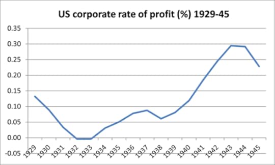 The Great Depression of the 1930s in the US economy lasted so long because profitability did not recover throughout that decade. In 1938, the US corporate rate of profit was still less than half the rate of 1929. Profitability only picked up once the war economy was underway, by 1940 onwards.