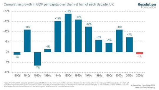 Real GDP per person growth in the UK in the first half of this decade is set to be the weakest of any comparable period in a century.