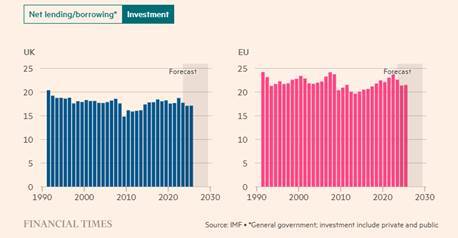 But there is more money to be spent in some areas, namely defence. The Starmer government with its arms race strategy in full blast has already announced a hike in defence spending from 2.3 per cent of GDP to 2.5 per cent by 2027 and onto 3% as soon as possible. The first hike has been paid for by cutting foreign ‘aid’ to the poorest countries in the world. And the much-heralded National Wealth Fund for investment will now be allowed to make investments in defence ie to arms manufacturers. So less on productive investment and more on unproductive destructive investment. The reason the British economy is in such a mess is that productive investment growth is low, lower than in comparable economies.