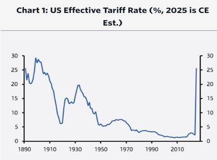 The overall impact of Trump’s tariff hikes is to raise the average tariff rate on US goods imports to 26%, the highest level in 130 years.