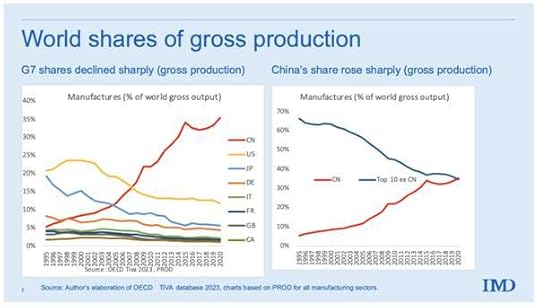 Nixon took the US off the gold standard in 1971 and established the dollar as the hegemonic currency with the ‘exorbitant’ privilege of being the only issuer of this currency, to pay for its imports and its capital investments abroad. But that did not stop the US losing market share in manufacturing through the 1970s.