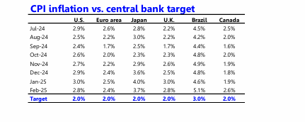 The ‘war against inflation’ is also being lost by the US Fed. The Fed’s target is 2% a year for US personal consumption expenditure (PCE) price inflation. In February, the PCE stayed at 2.5% and core PCE (excluding food and energy prices) rose to 2.8% a year. As I pointed out last February, in the major economies, there is an increasing whiff of stagflation ie low or zero growth alongside rising price inflation. And the impact of Trump’s import tariff hikes are still to be felt.