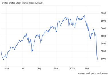 Trump’s tariffs will not be a liberation but instead only add to the likelihood of a new rise in domestic inflation and a descent into recession. Even before the announcement of the new tariffs, there were significant signs that the US economy was slowing at some pace. Already, financial investors are taking stock of Trump’s ‘dumbest trade war in history’ by selling shares. America’s former ‘Magnificent Seven’ stocks are already in in a bear market, ie falling in value by over 20% since Xmas.