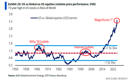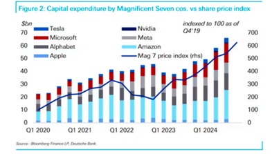 Now investors are concerned that this spending is unnecessary and, more to the point, that it will hit the profitability of the American companies if DeepSeek can deliver AI applications at a tenth of the cost. Five of the biggest technology stocks geared to AI — chipmaker Nvidia and so-called ‘hyperscalers’ Alphabet, Amazon, Microsoft and Meta Platforms — collectively shed almost $750bn of their stock market value in one day. And DeepSeek does threaten the profits of the data centre companies and the water and power operators which expect to benefit from the huge ‘scaling up’ by the Magnificent Seven. The US stock market boom is heavily concentrated in the ‘Magnificent Seven’.
