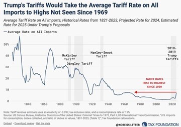 The accumulated increases in tariffs since Trump first launched them in his 2016-20 term would reach levels not seen since 1969, just before the international tariff reductions of GATT and the WTO during the ‘globalisation’ decades of the end of the 20th century.
