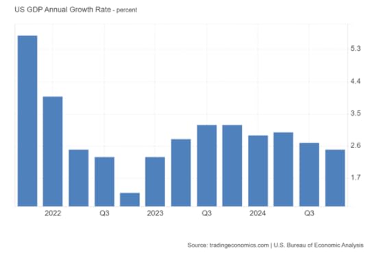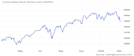 In a matter of weeks, the narrative over the US economy has shifted from the “exceptionalism” of the US economy to alarm about a sudden downturn in growth. Retail sales, manufacturing production, real consumer spending, home sales and consumer confidence indicators, are all down in the past month or two. Consensus forecasts for real GDP growth for Q1 2025 are now only an annualised 1.2%.