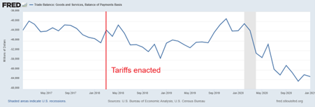 Pettis was failing to consider other factors, in particular, the dollar exchange rate with other trading currencies. The dollar appreciated in response to the tariffs, cancelling out at least part of the tariff effect on import prices. And it was not just households that had to pay more for imported goods in the shops, US manufacturers also suffered when they had to pay a lot more for parts and components.