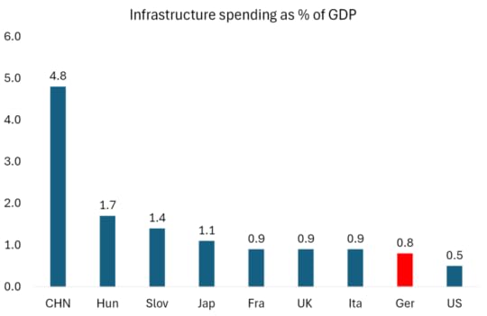 Germany’s Chancellor-to-be Friedrich Merz (after winning the recent election) has adopted the same story. In a complete about-face from his election campaign, when he opposed any extra fiscal spending in order to ‘balance’ the government books, he is now promoting a plan to inject hundreds of billions in extra funding into Germany’s military and infrastructure, designed to revive and re-arm Europe’s largest economy. A new provision would exempt defence spending above 1 per cent of GDP from the “debt brake” that caps government borrowing, allowing Germany to raise an unlimited amount of debt to fund its armed forces and to provide military assistance to Ukraine. And he plans to introduce a constitutional amendment to set up a €500bn fund for infrastructure, which would run over ten years. Suddenly, there is plenty of cash and borrowing to be made available for arms and military ventures.