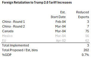 The overall impact on US manufacturing could total nearly 1% of GDP in exports lost.
