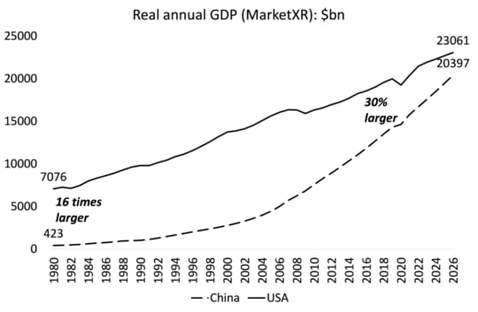 China was the only major economy that avoided a recession during the pandemic slump of 2020 and managed to grow by 5% last year compared to the US, the fastest growing G7 economy, at 2.8%. Moreover, US real GDP grew by as much as 2.8% last year partly because net immigration raised the size of the workforce – more people, more output. US real GDP growth per person was much less.