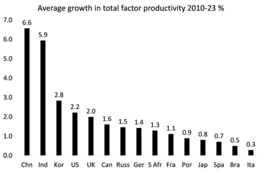 Total factor productivity (TFP) is a measure of how efficiently labour and capital are used to generate output. According to the US Conference Board, China’s TFP growth has been three times higher than the US and six times higher than Japan in the last decade or so.