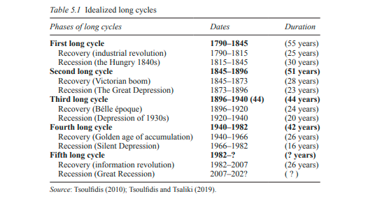 However, Mandel in Late Capitalism attempts to reconcile this ‘endogenous’ theory of economic cycles first presented by Kondratiev with Trotsky’s view that political factors must instead drive cycles. So he ends up with a mish mash in his explanation. For me, the upward swing of accumulation relates to a period of rising profitability and the downward phase relates to when the rate of profit falls. Economic crises create the conditions for a new rise in profitability based on new technologies that bring about a new upward wave.