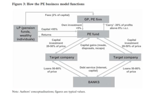 Eventually, the bought company is listed (or re-listed) on the stock exchange or a strategic buyer (normally a company in the same sector or even another PE fund) takes over. So apart from the dividends in sweating the company for three years or so, it can be sold at as a capital gain. In doing so, the PE fund also charges the company consultancy and management fees for the sale! So this PE model tries to maximise the surplus value out of company workforce, raises more debt to do so and extracts the maximum return in dividend profits, while reducing productive investment costs to the minimum.