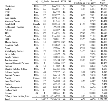 Carried interest refers to the share of profits made by private equity fund managers from an investment deal that they have put together. It is taxed at the capital gains tax rate instead of at the income tax rate, which generally means PE owners paying 28% tax instead of 45% tax. This is a stark difference from how publicly traded firms operate. “It shows you the upper bound of what governments could collect if all of the countries in the world coordinated to tax that pot,” Phalippou said in an interview, adding, “once you understand how much money we are talking about, you can understand why private equity is the largest donor to politicians and universities.”