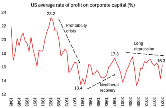 You finish with a musing about whether the LTRPF might instead be a secular theory showing the ‘ultimate limits’ to the capitalist mode of production. Well, the LTRPF as a cyclical crisis or ‘ultimate end of capitalism’ theory is not necessarily contradictory. Yes, there is no ‘permanent crisis’, but also the long-term decline in the ROP shows that capitalism has a limited economic life – indeed it is increasingly past its sell-by date.”