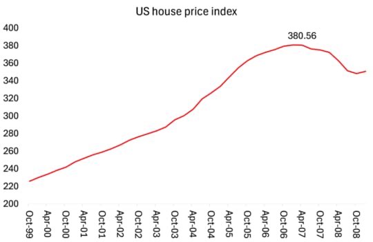 You claim that it was overproduction prior to 2007 that caused the Great Recession of 2008-9. Your evidence was “signs of a glut in the market in 2006 – millions of unsold homes, falling prices, late mortgage payments.” Really, in 2006? Home prices continued to rise throughout 2007 and only peaked in early 2007.