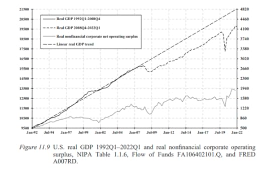 Under neoliberalism, there was a major reorientation of capital investments from domestic to offshore manufacturing and the expansion of domestic services created a dual economy with financial trading in the lead. In combination with the compression of wages, neoliberal changes improved business ‘competitiveness’. So there was a significant rise in the rate of surplus value that helped to sustain profitability. To demonstrate this argument, Mejorado and Roman plotted a counterfactual path of would have happened to the average profit rate if wage share in GDP had not been held down as it was after the 1980s. The business sector average rate of profit would have plummeted to unsustainable low levels.