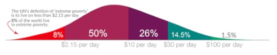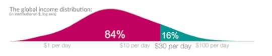 This sounds like a good measure for all the world’s people. If we rely on the $30 a day threshold as a definition for global ‘poverty’ and take into account the different price levels across countries, the latest statistics show that 85% of the world population live below this poverty line. That means 6.7 billion people.