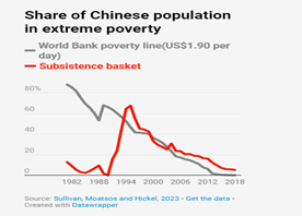 The large economic growth that lifted 800 million Chinese people out of extreme poverty since 1990 was a major contributor to the global decline in poverty. Peter Edward found that there were 1.139bn people getting less than $1 a day in 1993 and this fell to 1.093bn in 2001, a reduction of 85m. But China’s reduction over that period was 108m (no change in India), so all the reduction in the poverty numbers (not percentage) was due to China. Exclude China and total poverty in number was unchanged in most regions, while rising significantly in sub-Saharan Africa.