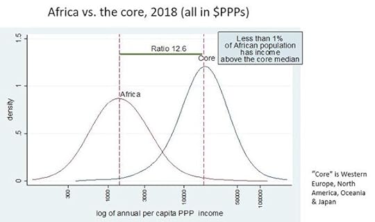 The World Bank’s IPL at $2.15 a day threshold is ridiculously low. $5 a day is what the US Department of Agriculture calculates is the very minimum necessary to buy sufficient food. And that’s not taking account of other requirements for survival, such as shelter and clothing. In India, children living at $2.15 a day still have a 60% chance of being malnourished. In Niger, infants living at $2.15 have a mortality rate three times higher the global average. Less than 1% of Africa’s population has income above the Western median income.