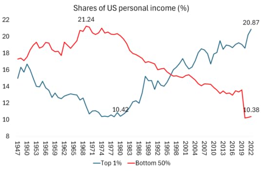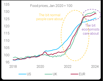 No wonder a recent survey found that 56% of Americans thought the US was in a recession and 72% thought inflation was rising. The world may be great for stock market investors, the ‘Magnificent Seven’ hi-tech social media companies and the billionaires, but it ain’t so for many Americans.