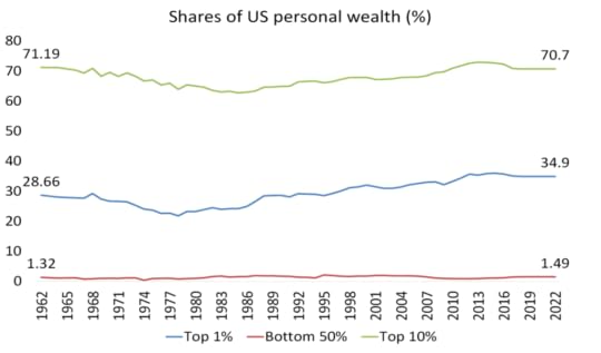 Indeed, inequality of incomes and wealth in the US, among the highest in the world, is only getting worse. The top 1% of Americans take 21% of all personal incomes, more than double the share of the bottom 50%! And the top 1% of Americans own 35% of all personal wealth, while 10% of Americans own 71%; yet the bottom 50% own just 10%!