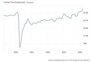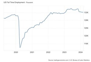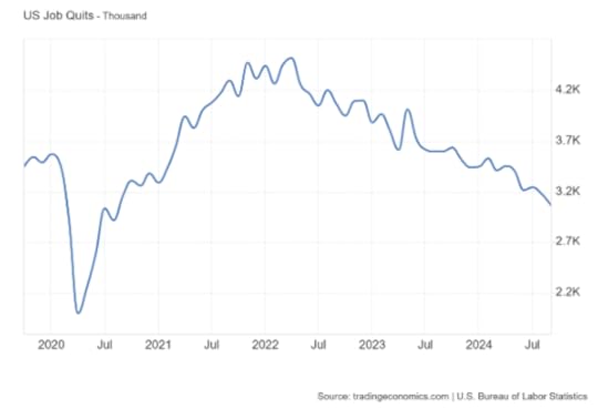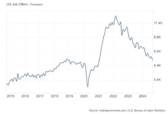 Both job offers and job quits rates have dropped to levels typically seen in recessions. Companies are hesitant to hire full-time workers, and employees are reluctant to quit due to job security concerns and an increasing dearth of available opportunities.