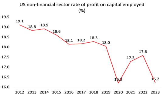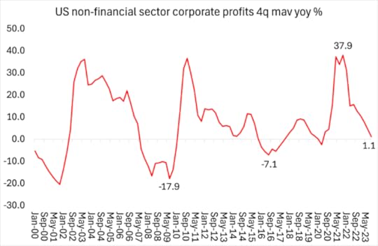 Yes, the mass of profits is very high for the Magnificent Seven and profit margins are high, but total profit growth of the US non-financial corporate sector has slowed almost to a stop.