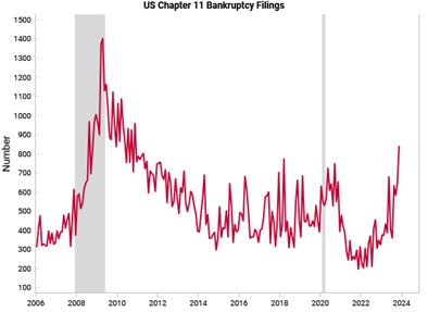 And that brings us to the issue of rising debt, both in the US corporate sector and in the public sector. If there were a bursting of the bubble over AI, many companies would be faced with a debt crisis. Already, more US companies have defaulted on their debt in 2024 than in any start to the year since the global financial crisis as inflationary pressures and high interest rates continue to weigh on the riskiest corporate borrowers, according to S&P Global Ratings.
